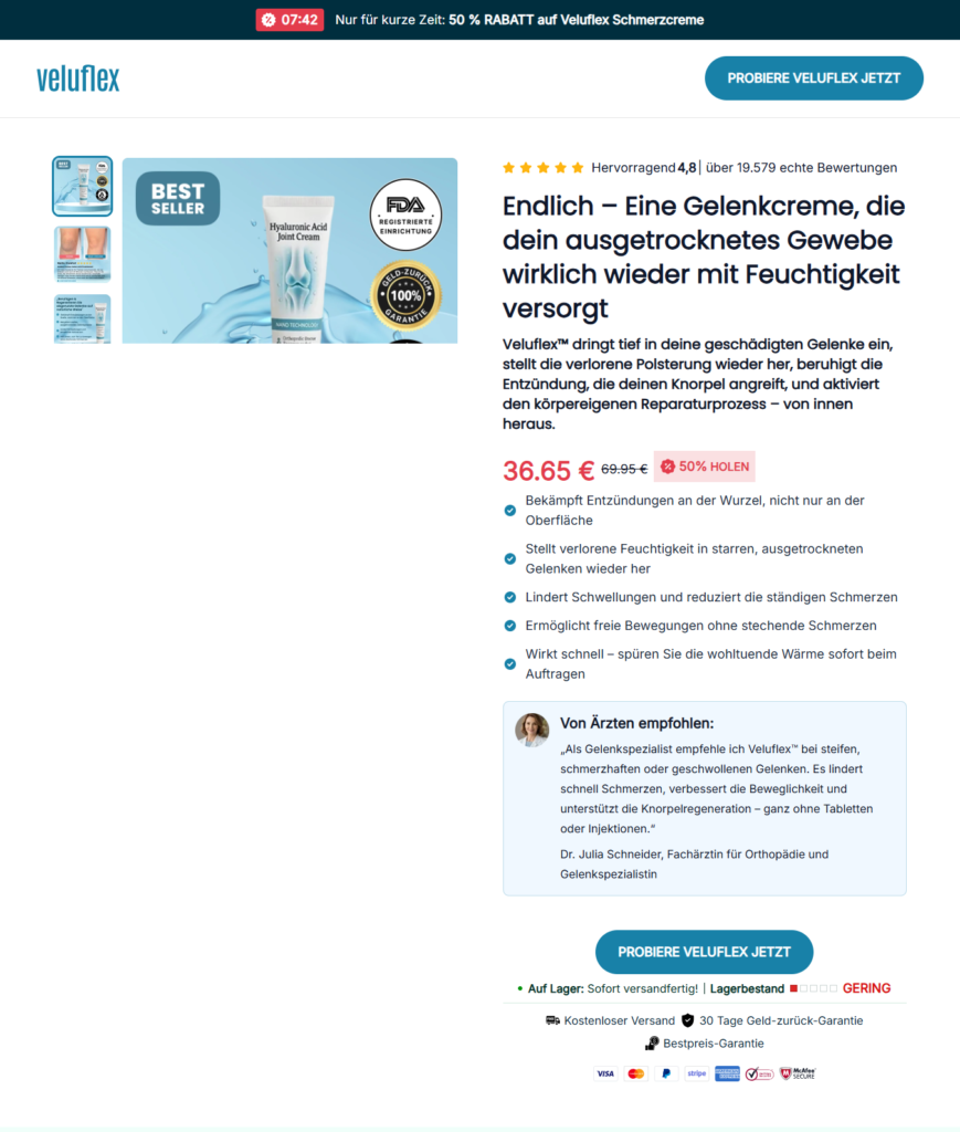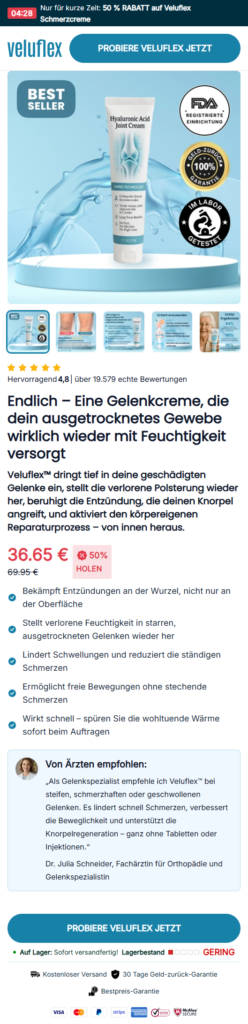 Veluflex hilft, Entzündungen zu reduzieren, die Beweglichkeit zu verbessern